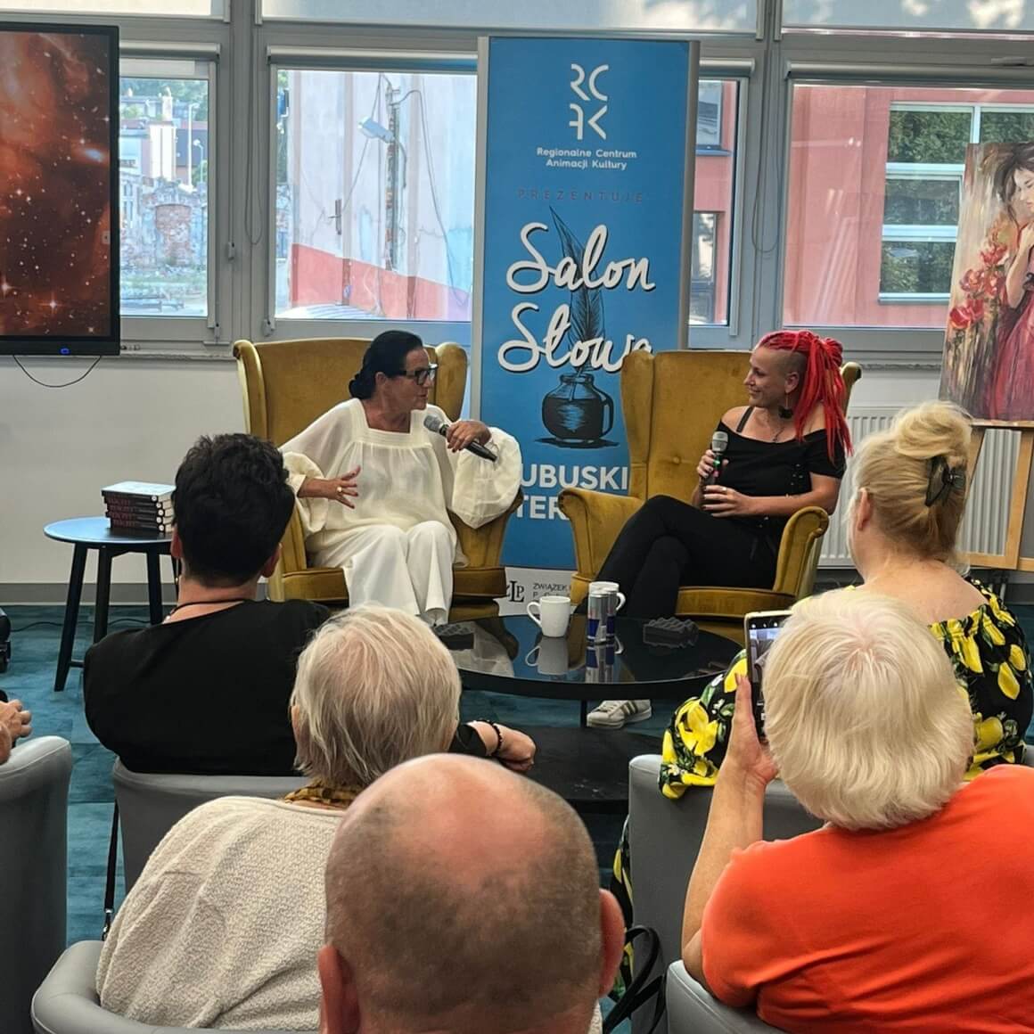 Oprócz rozmów o książkach i twórczości pisarskiej pojawiły się też lubuskie artystki: malarki, graficzki, rzeźbiarki, które opowiadały o tym, jak patrzą na sztukę i czy trudno jest stworzyć obraz na podstawie tekstu. Twórcze rozmowy, wymiana doświadczeń i mnóstwo ciekawych pomysłów – bo przecież o to chodzi, aby się wzajemnie inspirować!
